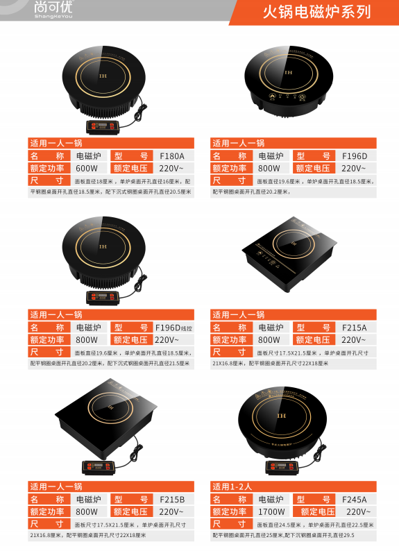 電磁熱能設(shè)備以其操作簡(jiǎn)單,使用方便,加熱速度快,熱效率高以及高效的節(jié)能效果已逐步成為傳統(tǒng)加熱設(shè)備的終結(jié)者,具有無(wú)明火、無(wú)煙、無(wú)廢氣排放、安全性好、美觀耐用等多方面優(yōu)點(diǎn)。公司生產(chǎn)的系列電磁爐可進(jìn)行煎、炸、煮等所有火鍋中西餐烹飪,具有非常強(qiáng)勁的功率(火力)和可靠性,其人性化設(shè)計(jì)體現(xiàn)了人與灶具的完美結(jié)合 ,廣泛配套于火鍋店連鎖店、企事業(yè)單位,學(xué)校,賓館酒店及連鎖餐飲業(yè)之廚房設(shè)施中,成為每一位顧客環(huán)保、節(jié)能及省錢(qián)的助手。