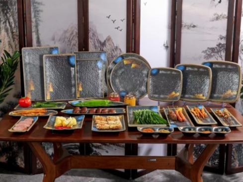 2.密胺餐盤套裝:用于火鍋店快餐店燒烤店,材質采用A5密胺粉制做,可在零下30度到零上120度使用