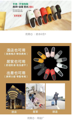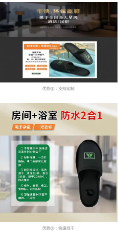 經(jīng)過三年鍥心開發(fā),于2022年正式推出第一代防水2合1環(huán)保拖鞋,酒店一次性拖鞋、浴室塑料拖鞋、地巾全部可以撤掉,浴后十分鐘自干不需要專門烘干,高、中、低三擋搭配,適合普通快捷一五星級不同檔次的酒店,超強(qiáng)防滑(防滑全國聯(lián)保),舒適度體驗(yàn)感極佳、外觀顏色配比豐富、耐磨不褪色不起毛,酒店0庫存、0垃圾,疫情之下可為酒店大幅降低相關(guān)費(fèi)用·····