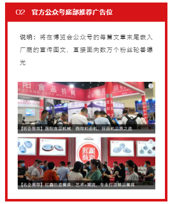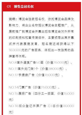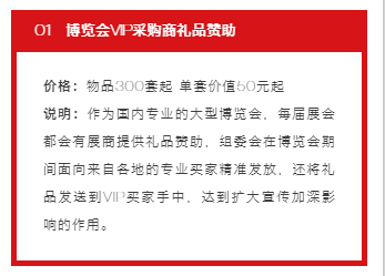 為幫助貴單位更好的市場(chǎng)宣傳與推廣,并在展前吸引更多潛在客戶(hù)對(duì)貴單位品牌產(chǎn)生關(guān)注、對(duì)將展出的展品產(chǎn)生期待,現(xiàn)根據(jù)組委會(huì)對(duì)各參展企業(yè)的統(tǒng)一安排,特作出以下宣傳推廣方案,助力貴單位在本次博覽會(huì)上贏得更多商機(jī)! 01定制類(lèi)宣傳推廣服務(wù)