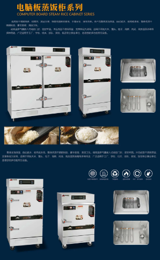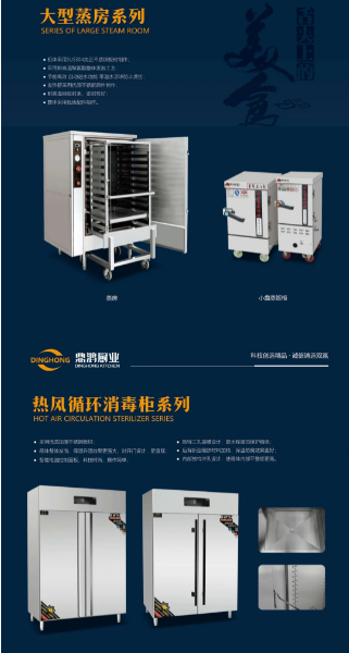 公司名稱:山東鼎鴻廚業(yè)有限公司 主要產(chǎn)品:蒸飯柜、消毒柜、保溫箱等廚房設(shè)備