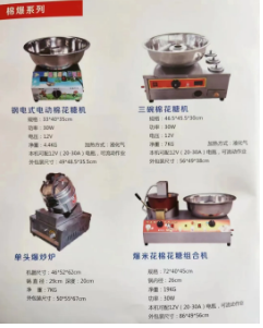 公司主要有高中低檔棉花糖機(jī)、玉米爆花機(jī),電動(dòng)燒烤爐,漢堡機(jī)鳥蛋機(jī),薯塔機(jī)、煎餅機(jī)、無煙燒烤爐,鮮奶機(jī)等供各位致富選擇。