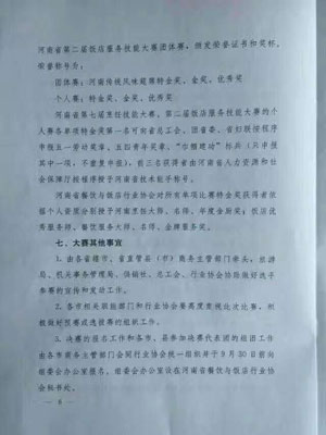 其中,河南省第五屆豫菜品牌大賽團體賽項目為河南傳統(tǒng)風味筵席賽;河南省第七屆烹飪技能大賽為個人賽,項目為中式烹調(diào)和中式面點;河南省第二屆飯店服務技能大賽項目有筵席擺臺服務技能、飯店客房服務技能、餐廳服務師T臺形象展示。