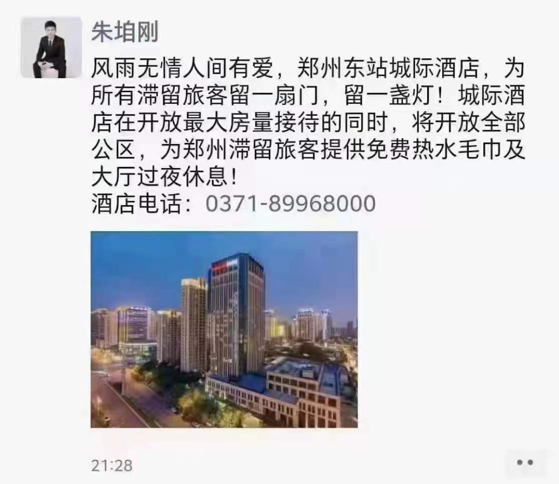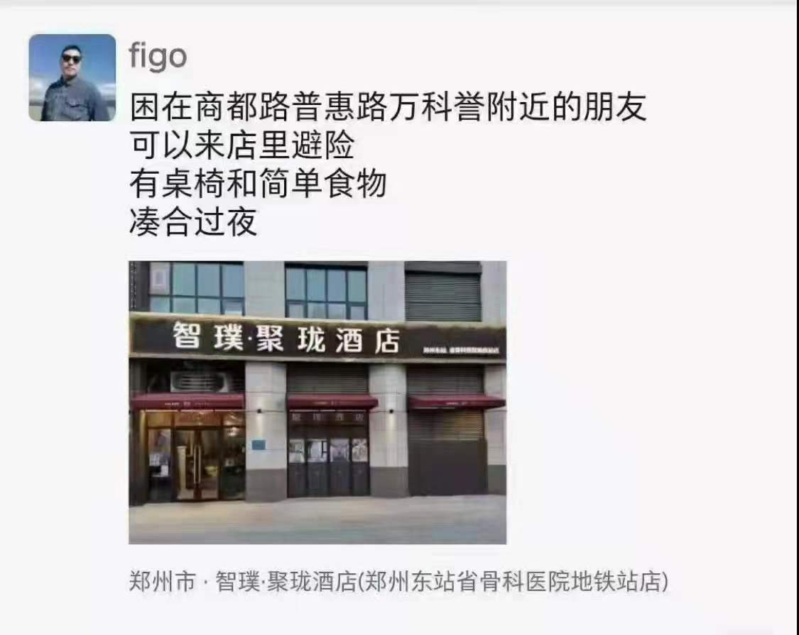 鄭州汛情避難救助信息7月20日晚,鄭州的微信朋友圈互助信息匯總(部分)1.【河南建設(shè)大廈】河南楷林建服物業(yè)公司在鄭開大道【河南建設(shè)大廈】免費(fèi)為附近滯留人員提供臨時(shí)避雨場(chǎng)所,如有需求,請(qǐng)到河南建設(shè)大廈一樓北大廳休息。 2.【鄭州科技館】停車場(chǎng)開放,提供避雨場(chǎng)所,提供熱水、方便面,大家在附近都可以前往,地址:嵩山南路32號(hào)連云路長(zhǎng)江路附近,創(chuàng)富欣城每個(gè)大廳都可以進(jìn)去待著。3. 西三環(huán)中原路附近【夢(mèng)妍藝考】,提供水和食物,可以免費(fèi)留宿。聯(lián)系人:張淼135268465974.【小鹿幼兒園】滯留在鄭州高新區(qū)春藤路、楓楊街、科學(xué)大道、長(zhǎng)椿路附近的路人,請(qǐng)到楓楊街春藤路交叉口向南200米松林小鹿幼兒園暫避風(fēng)雨,園區(qū)備有有吹風(fēng)機(jī)和瓶裝飲用水,如需進(jìn)餐請(qǐng)及時(shí)說明,路邊餐飲店都已關(guān)門,可采購(gòu)部分零食充饑。5.在【鄭州圖書館】附近的被困人員,不要冒險(xiǎn)回家,館里提供熱水及休息場(chǎng)所!地址:鄭州市金水區(qū)客文一街10號(hào)6.被困【高新區(qū)】有需要幫助的朋友請(qǐng)同格拉芬聯(lián)系,有充足員工宿舍。聯(lián)系人∶ 任沫帆 15136903249被困東區(qū)的朋友,可前往【庖丁堂】,留宿地址∶鄭東新區(qū)農(nóng)業(yè)南路和祥盛街口西南角庖丁堂酒店,電話∶ 88889000 張可可7.被困【經(jīng)開區(qū)】的朋友可前往【報(bào)國(guó)大廈】,地址∶經(jīng)開第八大街經(jīng)北二路 15093115687 劉芳8.被困二七區(qū)航海路京廣路附近的朋友及陌生人,可前往航海路京廣路海為商務(wù)廣場(chǎng)5樓(鄭州瑞祥裝飾)電話∶157388398989.在【嵩山路淮河路口】附近的被困群眾,可將車輛停放至【鄭州市婦女兒童活動(dòng)中心】停車場(chǎng),并可在中心休息!10.【馮特幼兒園】鄭州高新區(qū)行人可就近避雨,園區(qū)提供飲水和食物。地址:鄭州市牡丹路與白樺路交叉口向西100米馮特幼兒園。電話:1378365940211.【鄭州·Q先生劇本體驗(yàn)館(橄欖城店)】有水有電,有地毯可以睡覺。警示:容量不多。地址:鄭州市二七區(qū)賀江路連云路交叉口橄欖城都市廣場(chǎng)C座1114。電話:1383791181212.【屋頂時(shí)光機(jī)自習(xí)室文化路店】,停電但有水可容納附近人群過夜。地址:鄭州市金水區(qū)紅旗路32號(hào)院河南省豫劇三團(tuán)生活區(qū)8號(hào)樓。電話:1733718979813.【屋頂時(shí)光機(jī)自習(xí)室西大街店】有水有電可過夜。地址:鄭州市管城回族區(qū)西大街233號(hào)鄭州三種大樓15層西北室。電話:1733718979814.【東濟(jì)堂中醫(yī)館】室內(nèi)面積較大可打地鋪,另有桌椅提供休息。提供熱水,小朋友看情況可適當(dāng)安排床位。地址:鄭州市金水區(qū)黃河南路與東方金街交叉口。電話:1359879754715.【籬林記餐廳】店員稱水電都有,可提供熱水。地址:中州大道與柳林東路交叉口西南角。電話 : 0371-6507889916.【商務(wù)內(nèi)環(huán)新澳大廈10樓河南實(shí)榮筒倉(cāng)工程有限公司】會(huì)展中心D出口100米,避雨,過夜都可以,有熱水提供。聯(lián)系電話:17719833307歌迷量販KTV,歌迷KTV鄭州所有門店,免費(fèi)提供留宿,免費(fèi)提供礦泉水等簡(jiǎn)單食物建業(yè)總部港附近滯留的朋友,可以到D座八樓,我們提供休息的地方和飯食。聯(lián)系電話:0371—88980888凡是在鄭東新區(qū)商務(wù)外環(huán)路七號(hào),立基上東國(guó)際附近有需要幫助的朋友,可聯(lián)系河南康輝:18838102668能提供避雨場(chǎng)所和簡(jiǎn)單食物。商都路惠普路萬科譽(yù)附近,智璞聚瓏酒店,提供桌椅簡(jiǎn)單食物(近鄭州東站骨科醫(yī)院地鐵站)會(huì)展中心,MYOGA沙琳瑜伽,可隨時(shí)聯(lián)系。電話0371-88886300東區(qū)雙子塔附近的朋友,如果現(xiàn)在沒地方避雨,可以來鄭東醫(yī)院。這里地勢(shì)高,院子里也沒什么嚴(yán)重的積水。有電有水,一樓,三樓,五樓,都可以休息。如果有避雨的地方,就不用再出來了!注意安全。中州大道與連霍高速交匯處附近可聯(lián)系房車生活家鄭州門店:152 2989 3858我們會(huì)提供房車住宿及避雨場(chǎng)所和簡(jiǎn)單食物。如有被困在鄭東商業(yè)中心附近的朋友,可到我們《Barrett健身格斗工作室》有足夠場(chǎng)地,墊子剩余不多供留宿,有水、電、空調(diào),可洗澡晾衣!如有需要可以打15090287771被困東區(qū)的朋友或陌生人可前往庖丁堂留宿地址:鄭東新區(qū)農(nóng)業(yè)南路和祥盛街口西南角庖丁堂酒店 電話:88889000 張可可 所有借宿人員管吃管住被困農(nóng)業(yè)南路商都路附近的朋友及陌生人,附近所有酒店客房基本全滿,如果有需要,可以在我公司休息,管吃管。ǖ劁伝蛏嘲l(fā)),餐廳地址:農(nóng)業(yè)南路商都路交叉口,亞星投資大廈(鄭州宜信裝飾)電話:15738839898還有文化產(chǎn)業(yè)大廈,匯藝銀河里或者鄭州東站附近的朋友,今晚可以到他們餐廳將就著休息一下。聯(lián)系人電話:16608319035被困在鄭州東站附近的朋友們,可以來此拾酒店躲避雨水,我們會(huì)為您提供姜茶和避雨場(chǎng)所,24小時(shí)聯(lián)系電話:0371-6666 6601在CBD附近鄭州之林公園附近,沒有地方可以居住,可以來新芒果大廈12樓1204室,河南米度裝飾工程有限公司,目前電梯安全,沒有床位,但有飲