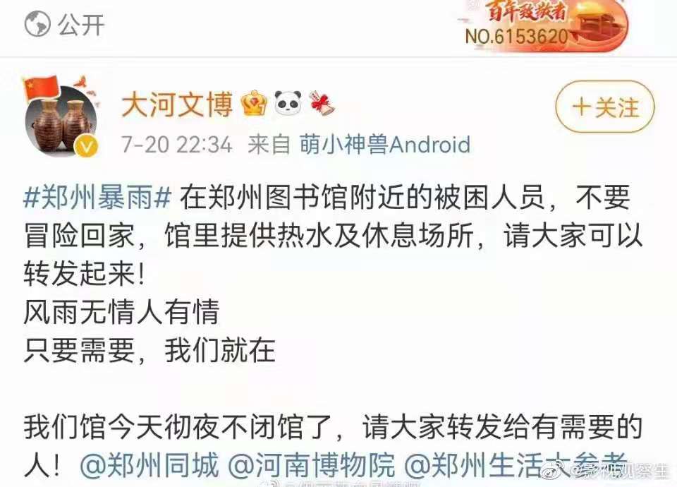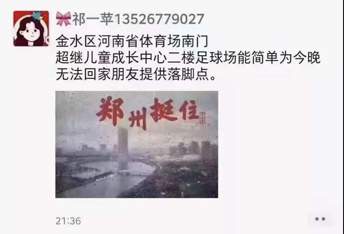 一方有難 八方支援 一時(shí)間 全國(guó)各地人員、物資緊急集結(jié) 馳援河南 幫助當(dāng)?shù)厥転?zāi)群眾渡過難關(guān) 危難關(guān)頭,有人挺身而出,冒雨守護(hù); 有人匯聚微光,風(fēng)雨同行。 風(fēng)雨面前一起扛! 有來自四面八方的支援,同時(shí)也有我們鄭州開展的自救和互助。7月20日,因雨勢(shì)太大和城市交通停滯,大量的市民流落在外無法回家,當(dāng)晚朋友圈避難救助信息不斷刷屏。